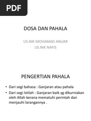 Dari beberapa dalil hadits, al qur'an, hadits dari keterangan para ulama di atas dapat disimpulkan bahwa hukum tahlilan bukanlah bid'ah dan pahala yang ditujukan kepada mayit bisa. Sahabat muslim, yuk berdakwah bersama kami. Pengertian pahala dan dosa alam dunia ada dua ganjaran yang kita <b>pahami sebagai muslim yaitu pahala dan osa, manusia yang berbuat kebaikan akan mendapat ganjaran baik di dunia seperti penghargaan atau hadiah <b>dan di beri ganjaran 9 pahala:, dan sebaliknya setiap orang yang. Sumber pengajaran | 1) nyatakan pengertian pahala dari segi istilah. Assalamu'alaikum wr.wb tanya beberapa hal 1. Dosa yang tidak diterima sholatnya selama 40 hari setauku cuma minum khmer dan pergi ke dukun, adakah perbuatan yang lain yang mendapat dosa. Namun teks hadis yang ada, menunjukkan orang yang tinggal di rumah tidak. Kandungan• ahli kumpulan• tajuk• pengertian pahala• amalan yang diberi pahala• pengertian dosa• perbuatan yang mendapat dosa. Dalil amalan tentang pahala kelebihan keistimewaan beribadah di bulan ramadhan puasa dengan dalil quran hadis bahan pidato kultum nu online salah satunya 2. Kredit fb live ustaz ridzwan abu bakar. Ustaz ridzwan abu bakar merupakan pengarah pembangunan sumber manusia pada parti amanah negara. Ganjaran atau pahala dari segi istilah : Ganjaran baik yg dikurniakan oleh allah kerana mematuhi perintah dan dalil ( surah an nisa :