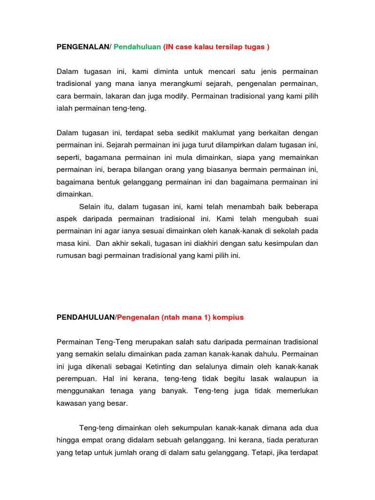 Semua permainan tradisional itu ada cabaran dan kita harus memikir untuk menyelesaikan cabaran itu. L memberi peluang untuk mereka bermain permainan tradisional ll mengetahui l sekolah mengadakan kegiatan kokorukulum ll mengadakan pesta permainan tradisional di peringkat negeri lll membina lebih banyak kemudahan. Seterusnya kepada pihak yang membaling itu perlu mengambil batu itu sambil melompat. Lantaran itu, permainan tradisional turut dipandang enteng serta mula tersisih daripada arus perdana kehidupan masyarakat. Karnival sukan dan permainan tradisional 2008 merupakan salah satu saluran pembelajaran dan pendekatan tentang adat dan warisan melayu. Permainan tradisional merupakan warisan bangsa yang perlu dipertahan untuk tatapan generasi akan datang. Text of permainan teng teng. Penerangan tentang permainan dari pelajar. Ianya memerlukan gelanggang yang kecil sahaja. Biasanya dimainkan selepas musim menuai. Kemudian ianya perlu membaling satu batu. Oleh sebab itu, permainan tradisional juga dikenali sebagai permainan rakyat. Banyak sekali warisan budaya yang mengandung nilai luhur dan patut untuk.